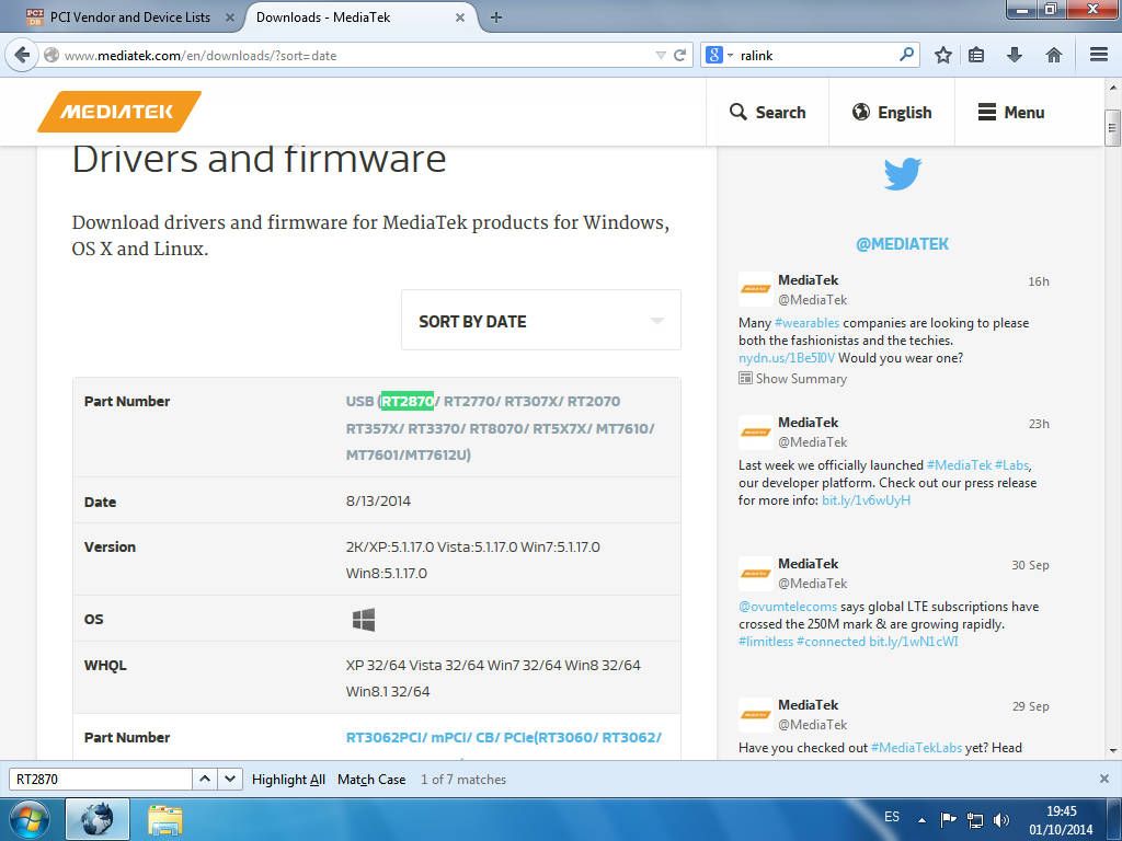 Ya se han obtenido los detalles del dispositivo, que se trata de una Ralink RT2870 en este ejemplo, así que solo queda saber quién está detrás de Ralink, que es Mediatek, buscar el driver, descargarlo e instalarlo haciendo doble clic sobre el ejecutable .exe.